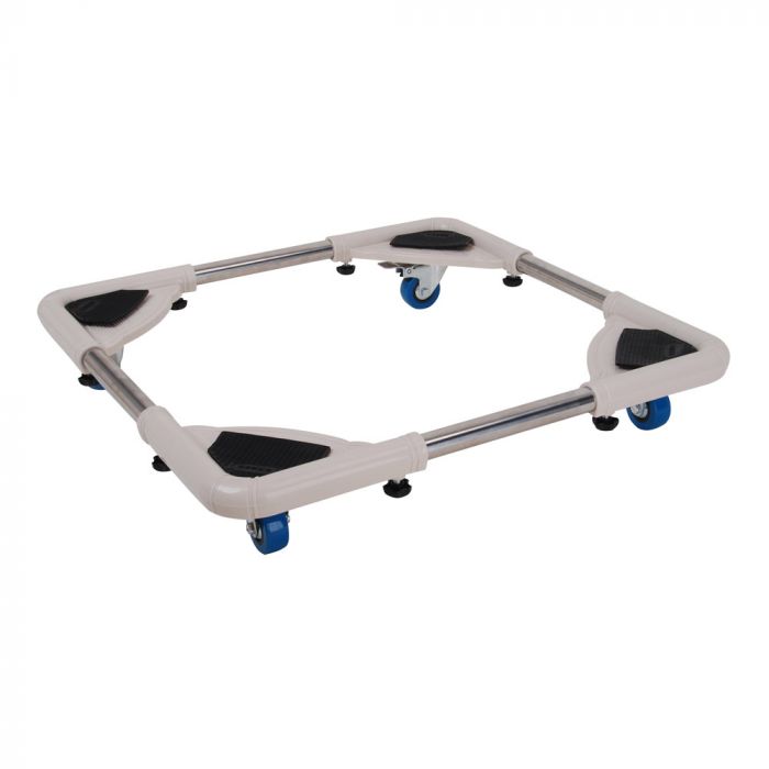 Make moving and positioning your laundry appliances effortless with the Magic Chef® Washer Dryer Pedestal MCSLB04P. This portable, adjustable dolly is designed to fit Pinnacle and Magic Chef® clothes washer and dryer models, raising the unit off the floor while allowing easy mobility. With an adjustable width and depth from 17.7" x 17.7" up to 27.6" x 27.6", this pedestal accommodates various appliance sizes. Built for strength, it supports up to 220 lbs and includes 4 swivel wheels for smooth movement, 4 non-skid rubber corner pads to keep appliances secure, and a locking mechanism to prevent unwanted rolling. Comes complete with a tape measure, screwdriver, and bubble level for easy assembly.