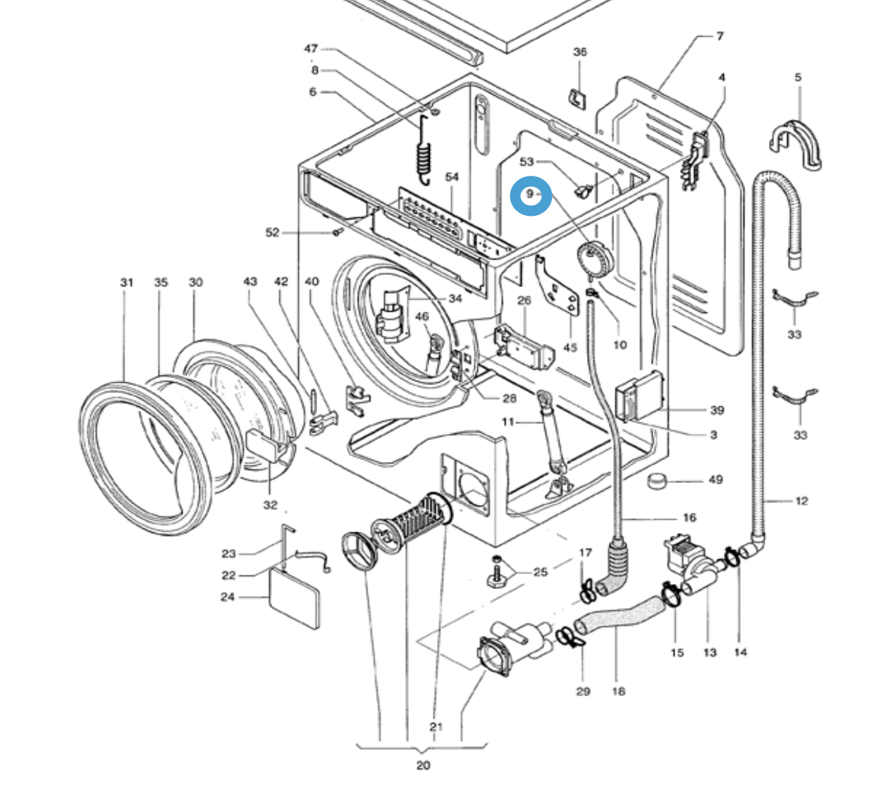 Function: Regulates water fill level for proper washing performance